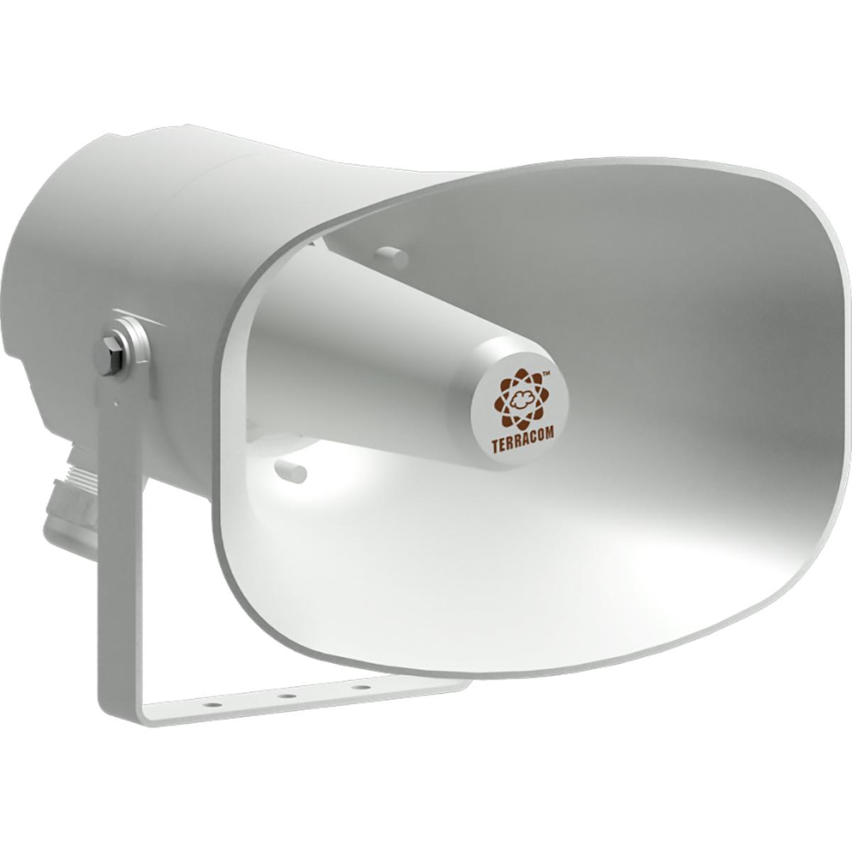The TERRACOM APH30-IP POE network horn speaker has an integrated TERRACOM IP module with 2 x 20w amplifier, three control inputs and one output contact for triggering events. Integrated DSP tools for audio enhancement and memory storage are just two other features of the APH30-IP.