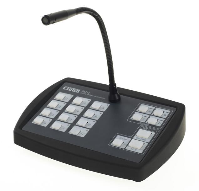 The Cloud PM range of paging microphones is primarily designed to provide zone paging facilities when used with the Cloud zoning mixers and multi-zone Mixer Amplifiers (via analogue interface).