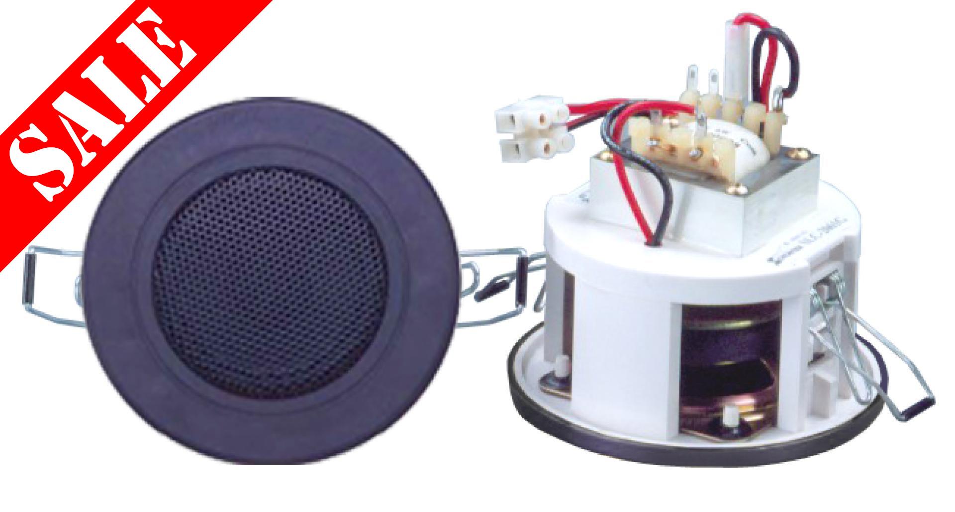 The CES Audio SLC2060 is a miniature 2.5" flush mounted ceiling speaker in black, designed to look like a low voltage spotlight. Rated at 6 watts and suitable for 100 volt line public address systems only.
