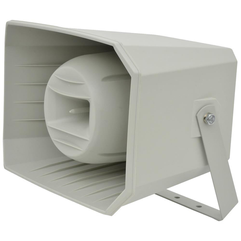 Unlike standard outdoor horn speakers, this powerful music horn loudspeaker has a full range output and is therefore suitable for background music as well as public address.