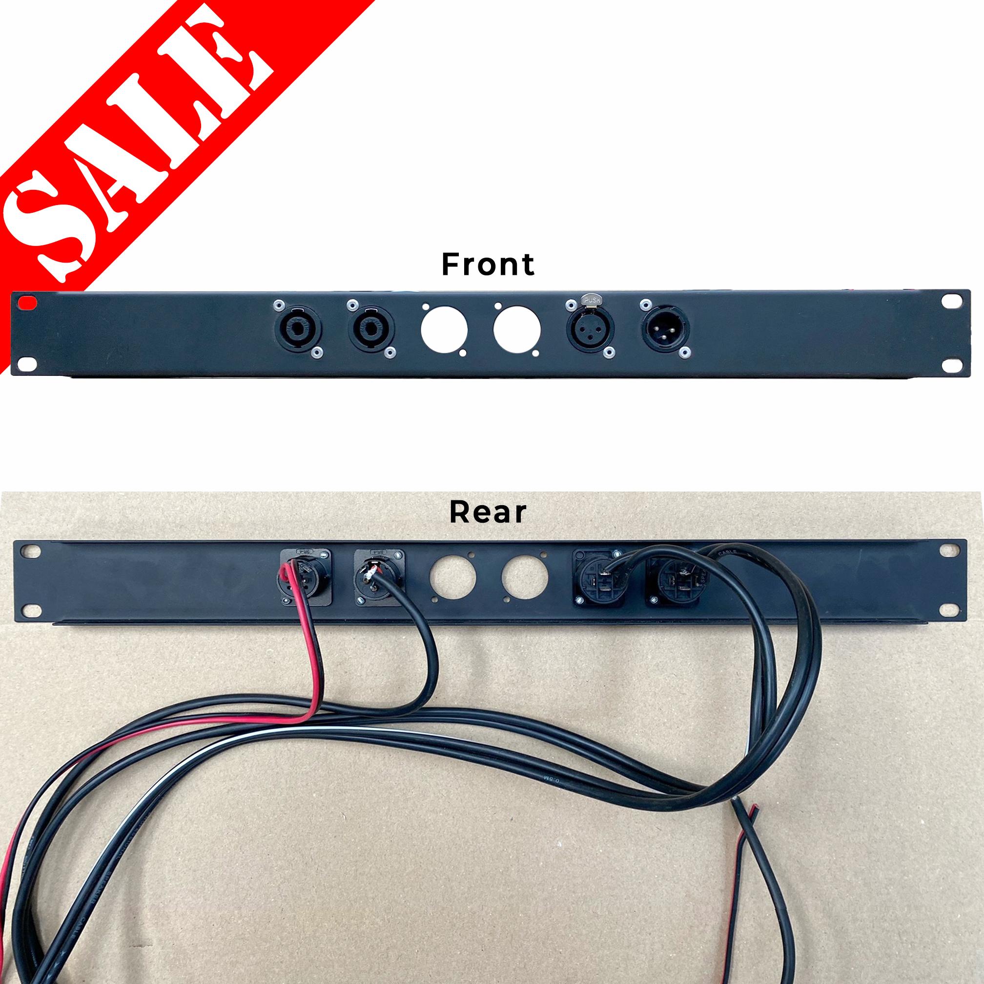 The 1U rack panel has been fitted with 2 x Speakon connectors, 1 x XLR-in & 1 x XLR-out socket. Wired with 1m cable tails.