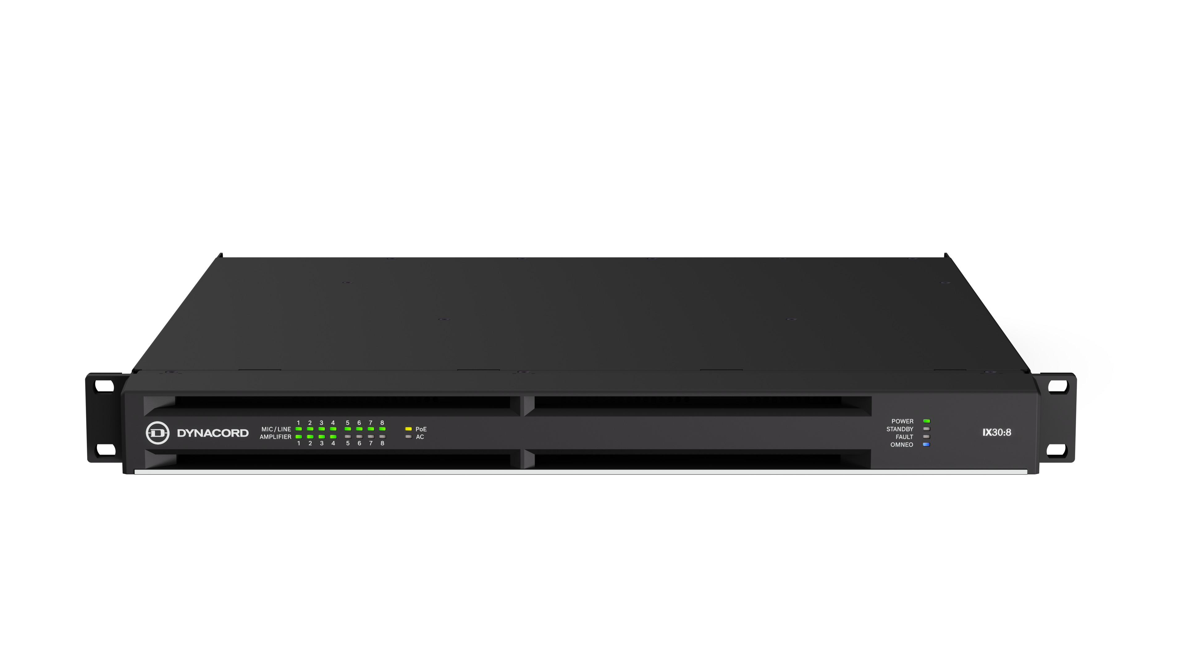 Dynacord IX30:8 | 8-Channel DSP amp with 8x8 Dante Channels | 3 kW total output power | For 70V / 100V or low impedance loads | 16 x 16 Matrix Mixer