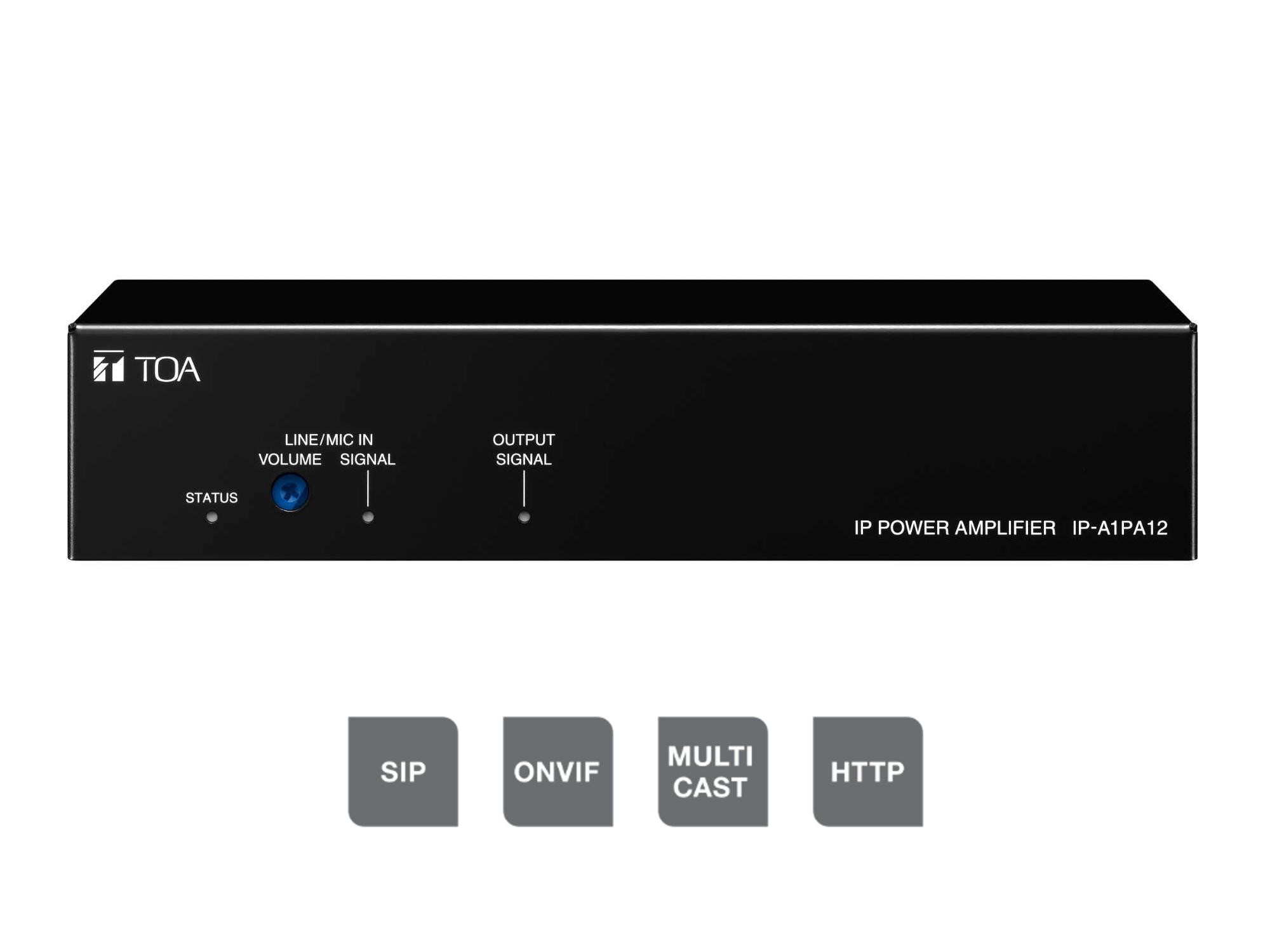 The TOA IP-A1PA12 IP Power Amplifier is based on open standards to connect straight into standard IP networks and can be easily integrated into your video management system (VMS) or SIP-based communication system. A single standard network cable provides both connectivity and power.