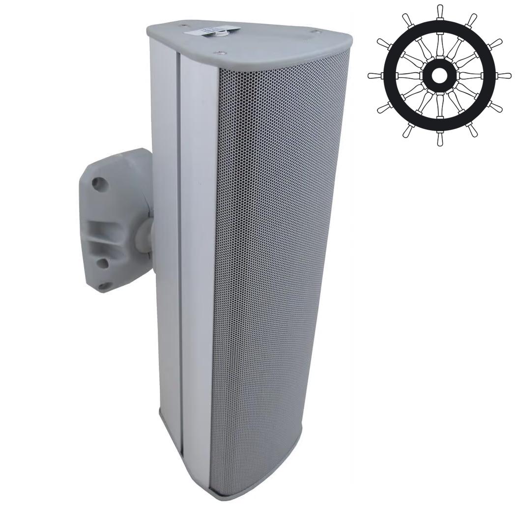 The DNH CAS-15-54T-MED aluminium column loudspeaker is rated at 15 watts, 70/100V line and is certified for EN54-24 voice alarm for fire detection and fire alarm systems in buildings and ships.