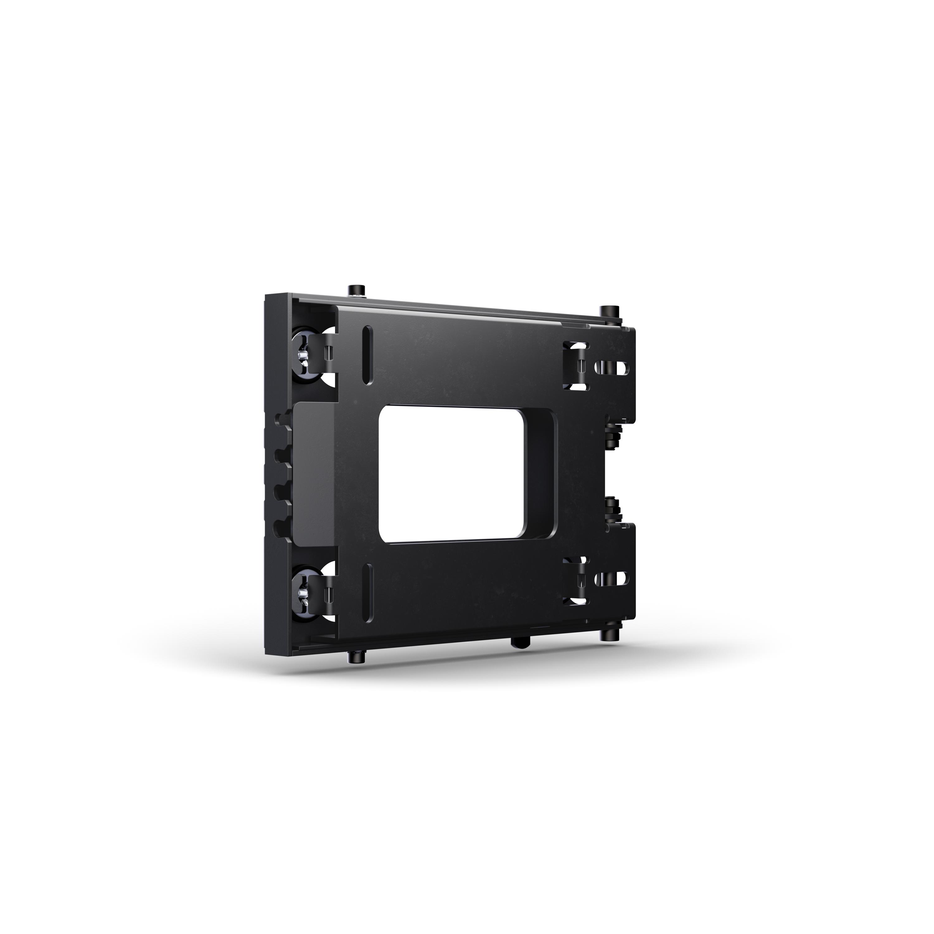 The subwoofer is hooked into the bracket with pre-assembled rubber pads and locked in position by the safety hook. The steel reinforcement of the rubber pads ensures a stable hold, while the rubber coating reduces the transmission of structure-borne sounds.