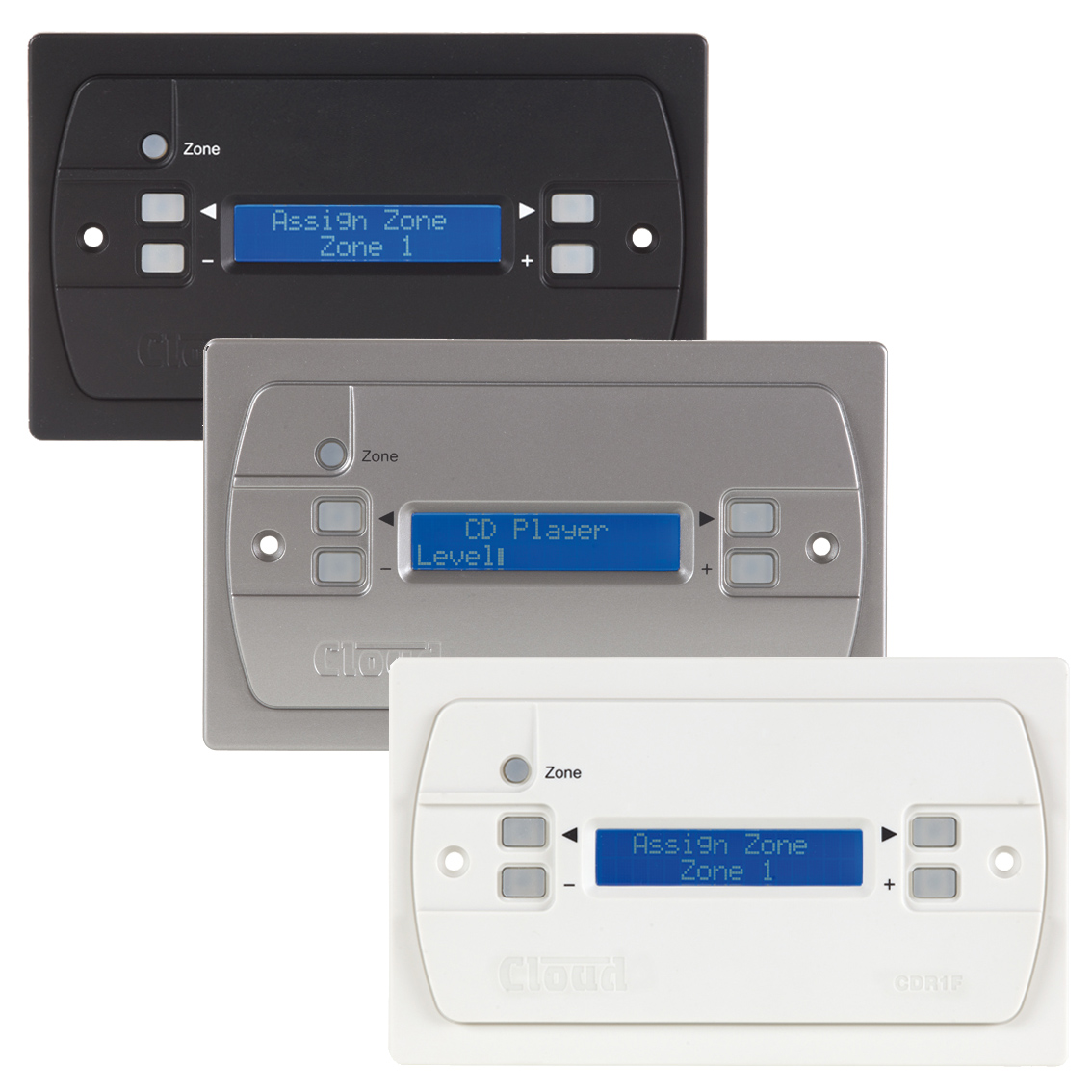 The Cloud Electronics CDR-1FW flush mounted remote music source and volume control is finished in White and is compatible with the DCM-1 / DCM-1e Digital Control Zone Mixers.