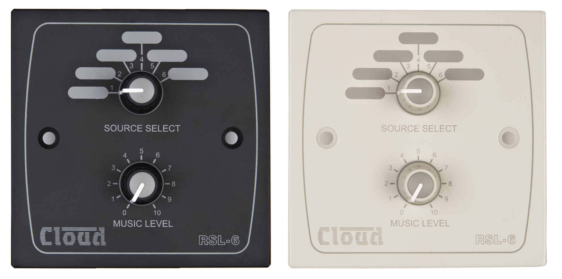 The RSL-6 provides remote volume control of an audio channel, and also remote selection of the music source for that channel, when used with devices having up to six line inputs.