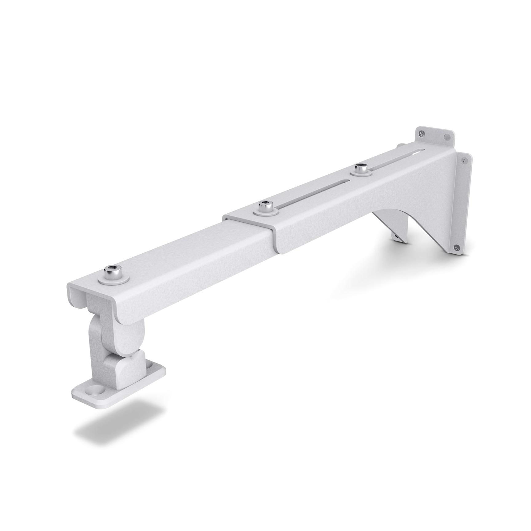 The LD Systems CURV 500 WM BL W white wall mount bracket will hold up to six standard CURV 500® satellites or three Touring Set duplex satellites attached to the system’s SmartLink adapter.