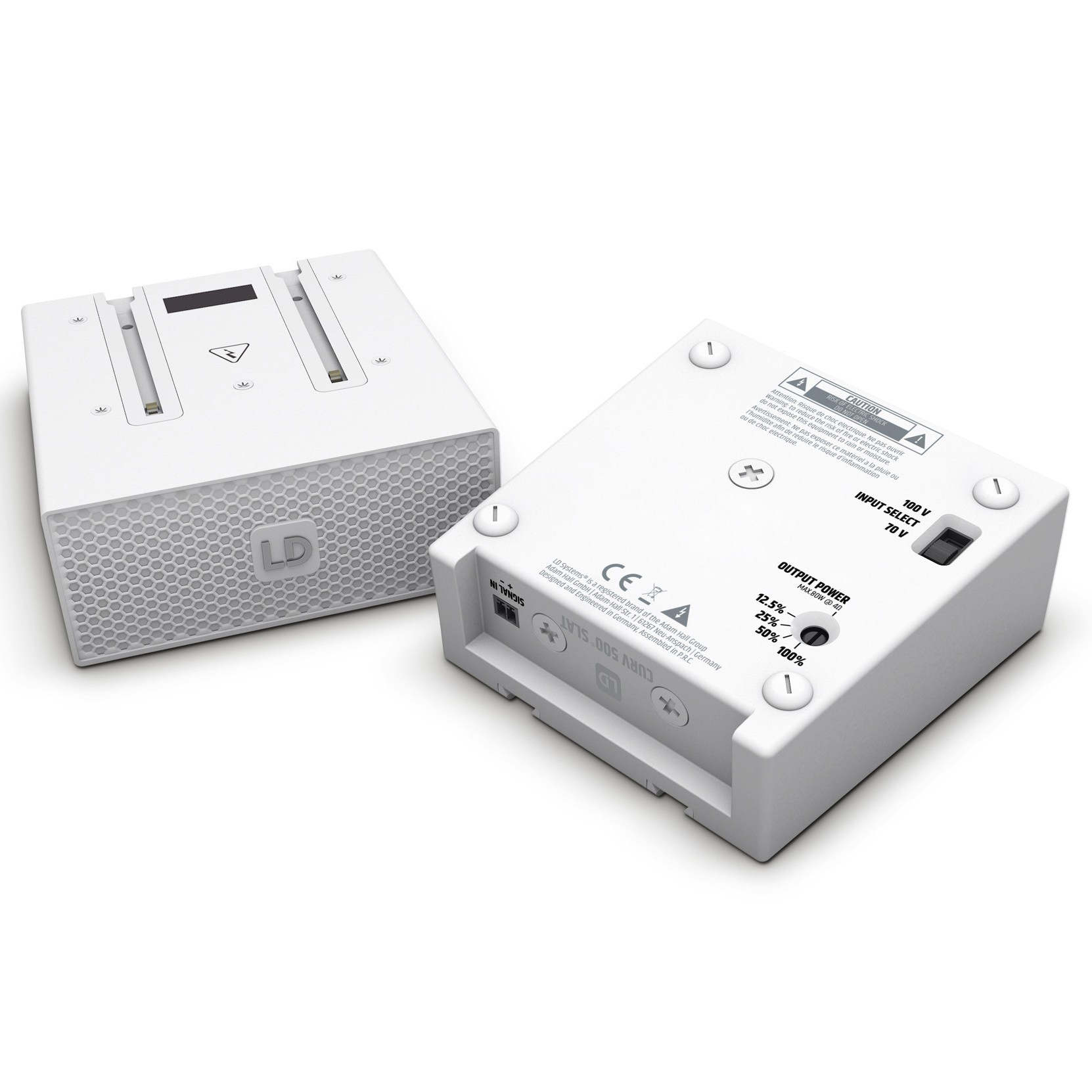 The LD Systems CURV 500 SLA T white SmartLink adapter enables up to 6 Curv 500® satellite speakers to be connected & used on a high impedance audio system, 70 or 100 Volt line.