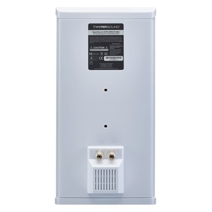 The Hypersound directional audio Mono Pack in White contains one H3000/AMP amplifier and one H3000/E ultrasonic emitters in White.