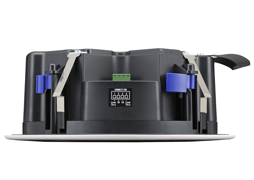 The design enables a safer, faster installation. A carry strap enables safe carrying of the speaker, especially when climbing ladders and an anti-drop tab mechanism holds the speaker in place whilst tightening the fast fix double threaded clamp screws.