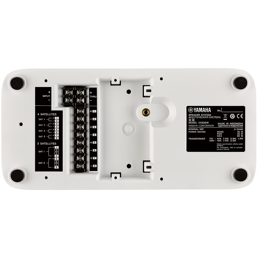 The Yamaha VXS3SW subwoofer uses a 3.5" driver and swing radiator technology for solid bass in a compact unit. Rated at 40 watts Program at 8 ohms or 15 watts on 100 volt line. Designed for use with Yamaha VXS1ML miniature speakers.