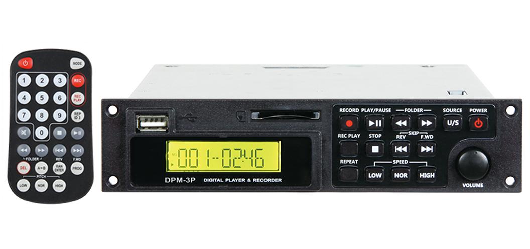 The Mipro DPM-3P SD & USB digital player / recorder module is compatible with the Mipro MA-505, MA-708 and MA-808 portable PA systems.