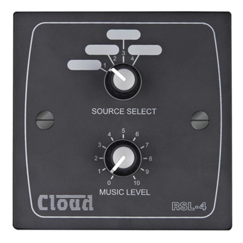 The Cloud Electronics RSL-4W and RSL-4B remote source selector & volume control plate is for use with any Cloud amplifier with 4 audio inputs and a Remote Source Selection Port.