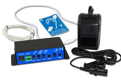 The kit comes complete with loop amp & power supply, pre-formed counter loop, microphone & induction loop present sticker.