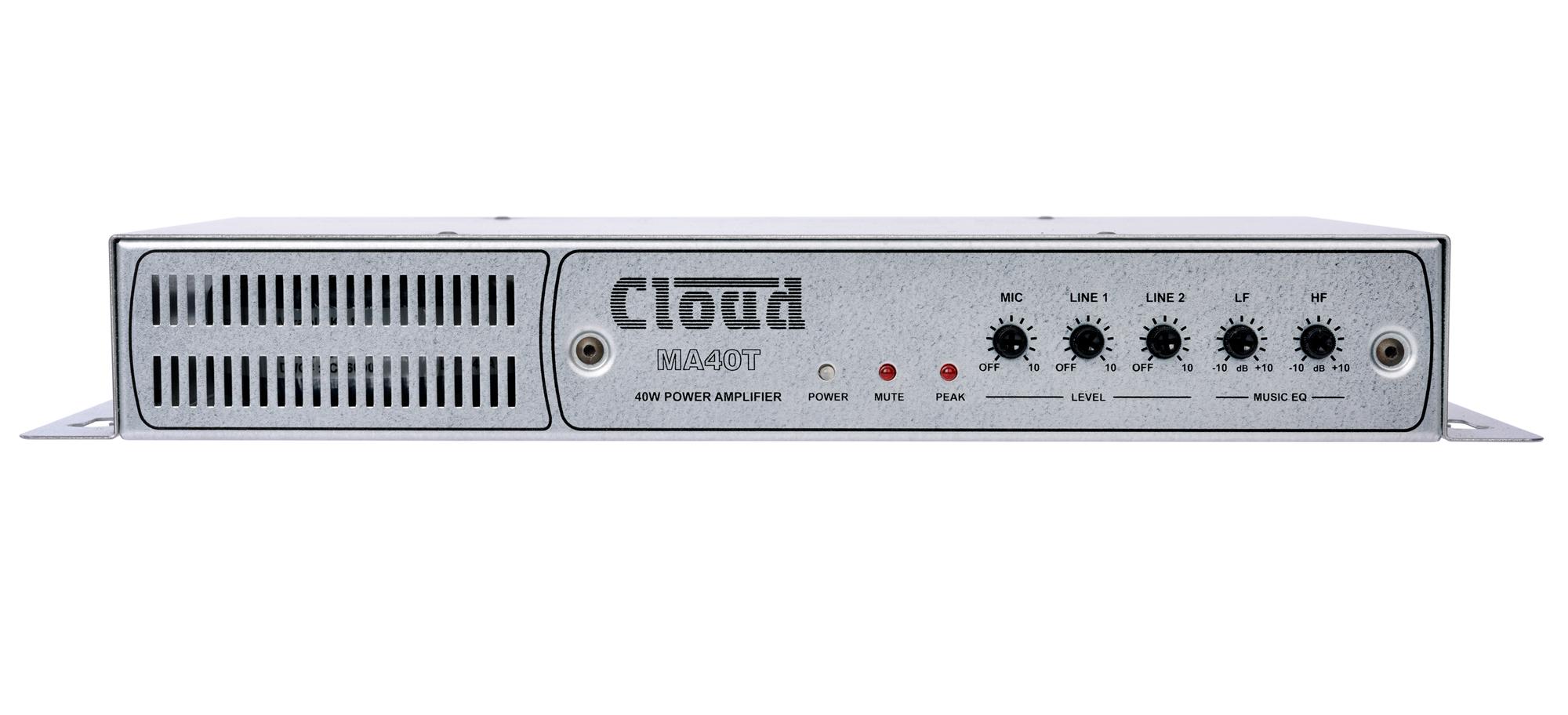 The Cloud Electronics MA40T is a mini amplifier providing 40W output power at 25V / 70V 100V.