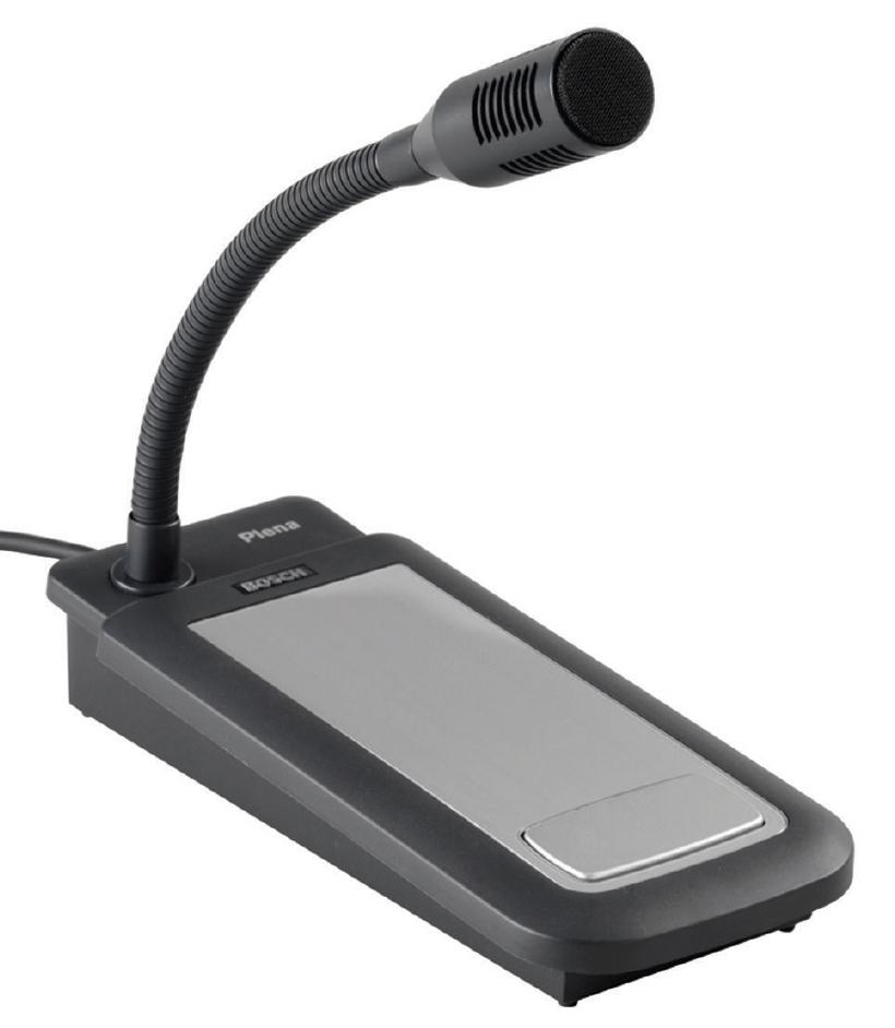 The Plena PLE-1CS heavy duty tabletop unidirectional paging microphone is a high-quality call station with a heavy metal base and rubber feet and is designed for use with the BOSCH PLENA range of amplifiers.