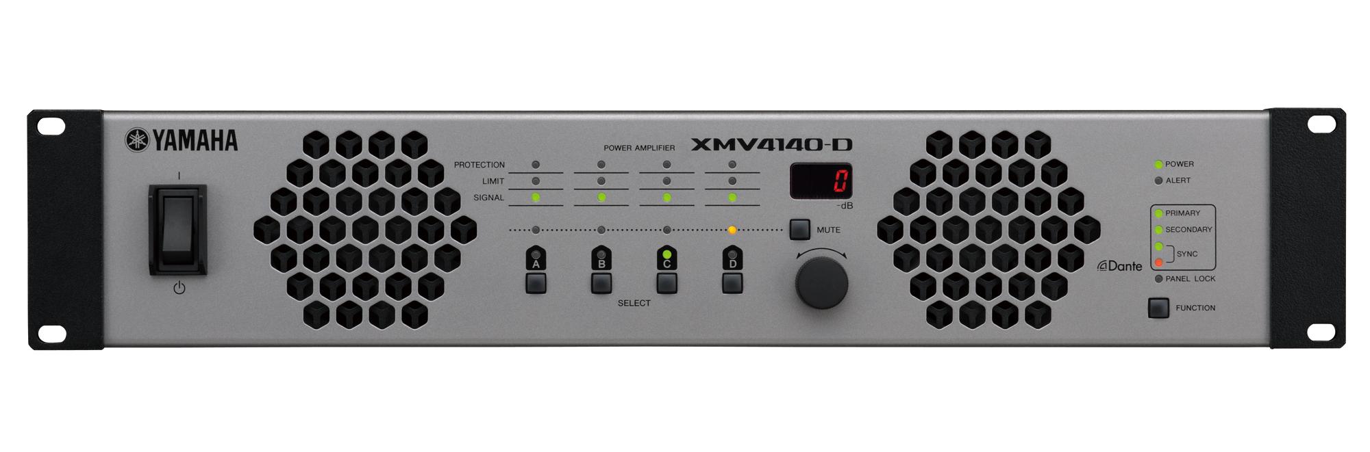 The Yamaha XMV4140D 4 channel power amplifier with Dante combines Class D efficiency and versatile features for commercial installations.