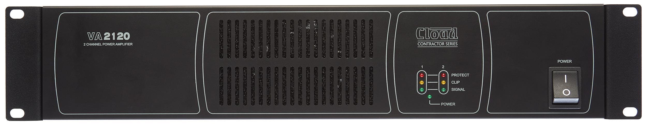 The Cloud Electronics VA2120 power amplifier offers two channels each delivering 120 watts. For use on low impedance audio systems (4 ohms minimum) or 25 / 70 / 100 volt line distributed sound systems.