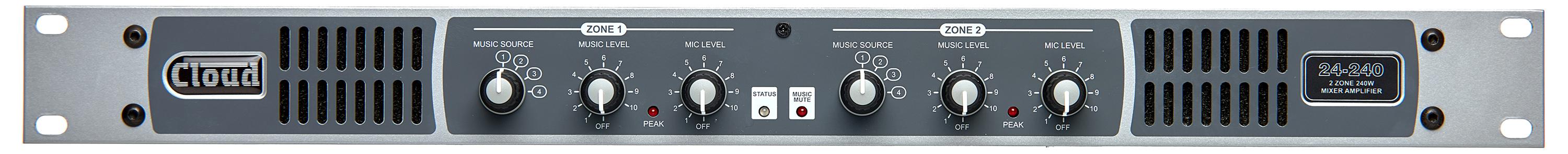 Cloud Electronics 24-120 - 2 x 240 watt, two zone mono mixer amplifier suitable for both low impedance or 100 volt line systems.