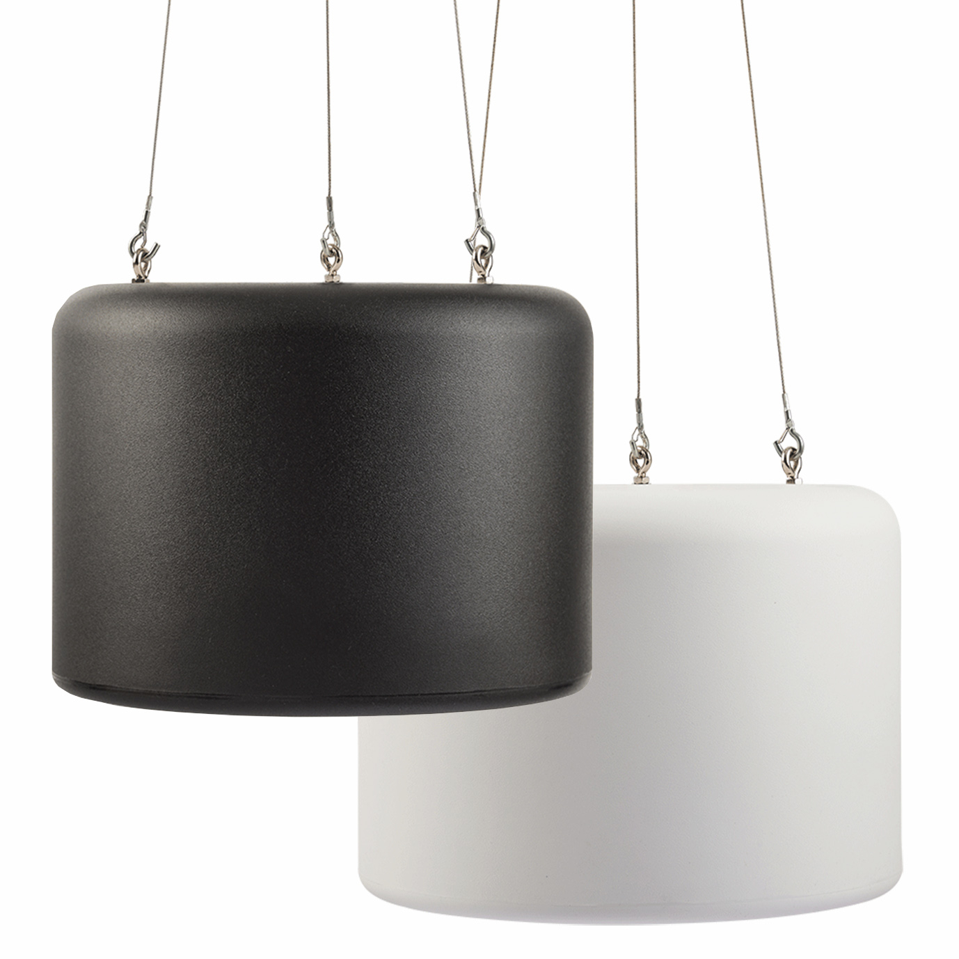 The CS-C speakers are normally flush-fitted into ceilings but using the PC-200B housing allows them to be suspended from a single point fixing, either from a ceiling or from steelwork or cable trays. Alternatively, the adaptable PC200B can be fixed directly to the ceiling via the 3 x M6 recessed threaded inserts.