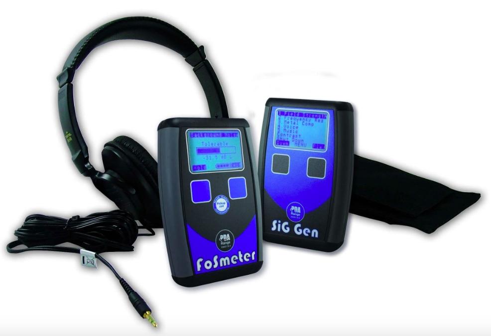 The kit includes the SigNET FPRO Fosmeter Pro induction loop tester, a Signal Generator with pre-loaded test tones and a set of headphones.