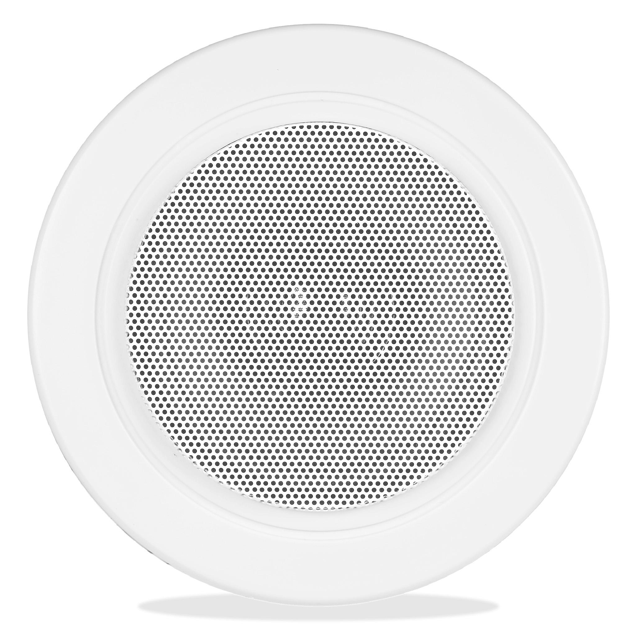 The Audac AWP06 waterproof ceiling speaker offers a 6 watts RMS and is suitable for low impedance (8 Ohm) or 100 Volt line distributed systems with power taps for 6, 3 and 1.5 Watts.