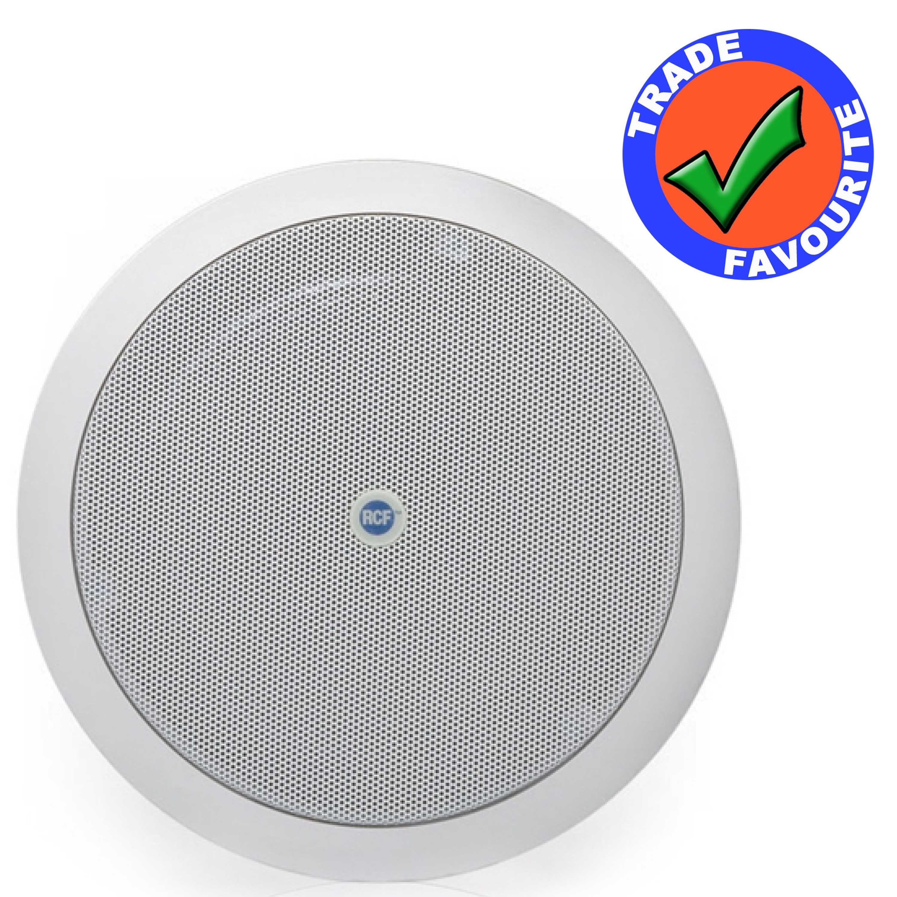 The RCF PL 8X is a 20 watt flush mounted ceiling speaker with 8" driver and 1" coaxial tweeter suitable for 100 volt line distributed sound / business music systems.