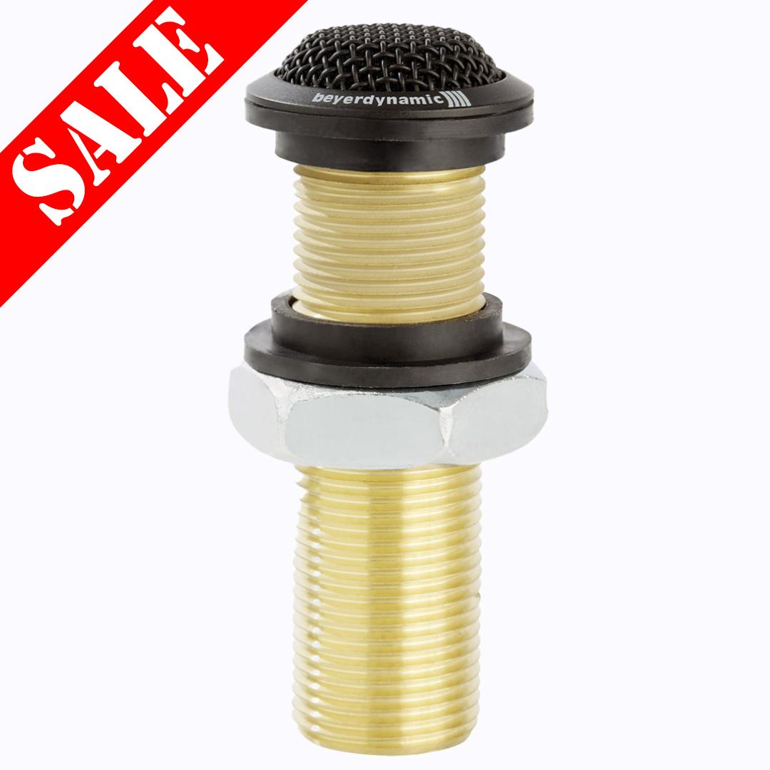 The Beyerdynamic BM33B discreet condenser microphone has a half-spherical response and is designed to be flush mounted into a table top or ceiling tile where mounting space is limited or a very inconspicuous microphone is needed.