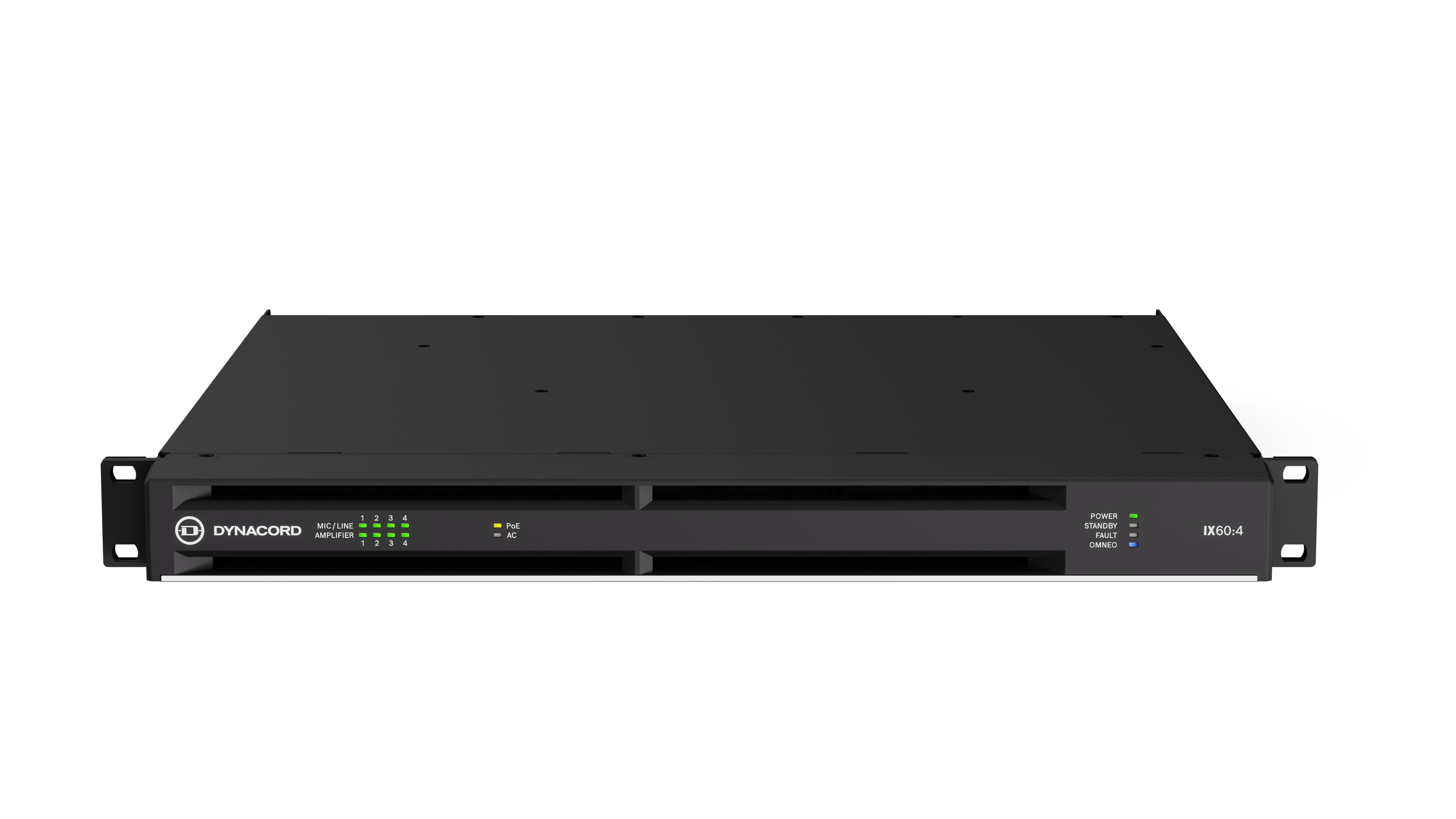 Dynacord IX60:4 | 4-Channel DSP amp with 8x8 Dante Channels | 6 kW total output power | For 70V / 100V or low impedance loads | 12 x 12 Matrix Mixer