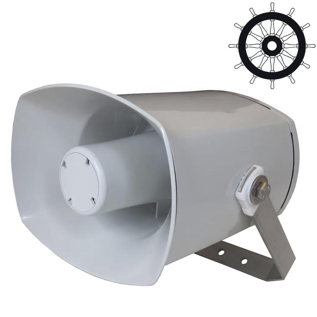 Plastic MED compliant, marine grade horn speaker. 15 watts, 70V / 100 volt line.