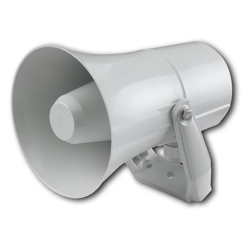 The DNH HP-10T is a 10 watt plastic horn loudspeaker suitable for 100 volt line public address sound systems and supplied complete with mounting bracket.