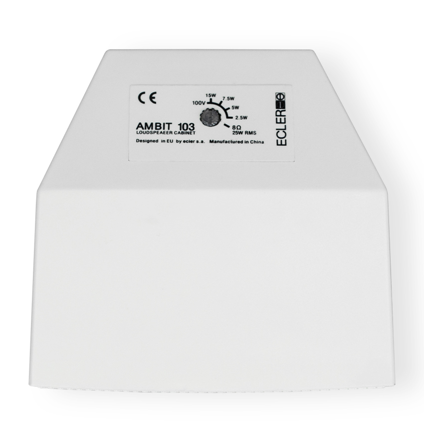 The ECLER AMBIT13WH (previously eAMBIT103WH) ultra compact 2-way coaxial cabinet loudspeakers are ideal for background music reinforcement. The eAMBIT103WH is suitable for both 100 volt line or 8Ω systems and is rated at 15 watts, 100V or 25 watts, 8Ω. Fitted with a 3.5" woofer and 0.5" tweeter.