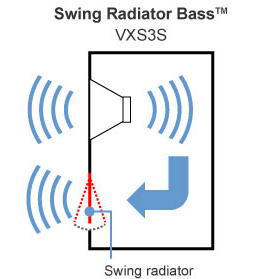 Original Yamaha SR-Bass™ technology employed in the VXS3S suspends a four-sided diaphragm on only one of its sides, using the resonance of the diaphragm to enhance the system’s low-frequency output.