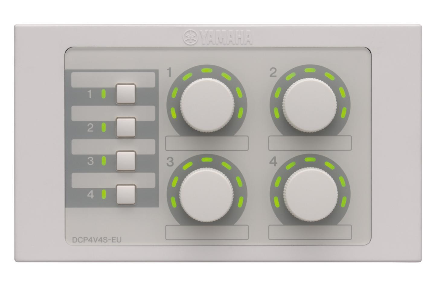 The Yamaha DCP4V4S digital control panel provides flexible external control of several functions on the MTX matrix mixers such as preset recall, levels, and SD card playback.