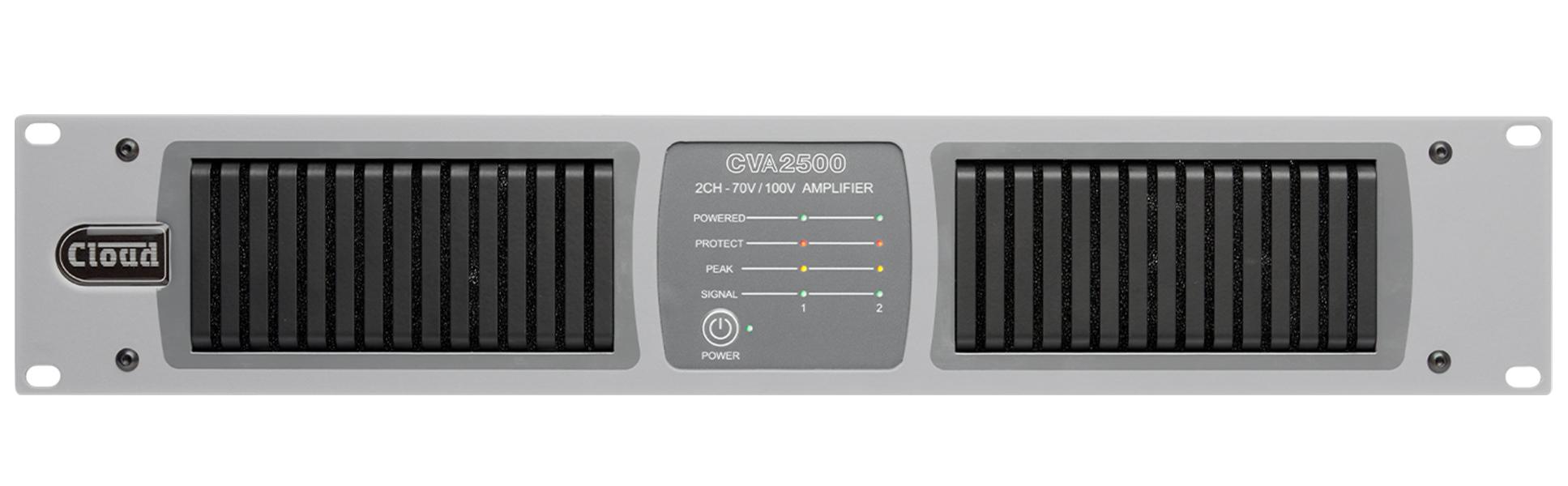The Cloud Electronics CVA2500, is a multi-channel digital power amplifier able to drive both low impedance loudspeakers (4/8 or 16 ohms) and high impedance (70/100 V-line) loudspeaker systems. Ideal for retail, leisure, commercial and industrial applications. Rated at 2 x 500 watts.