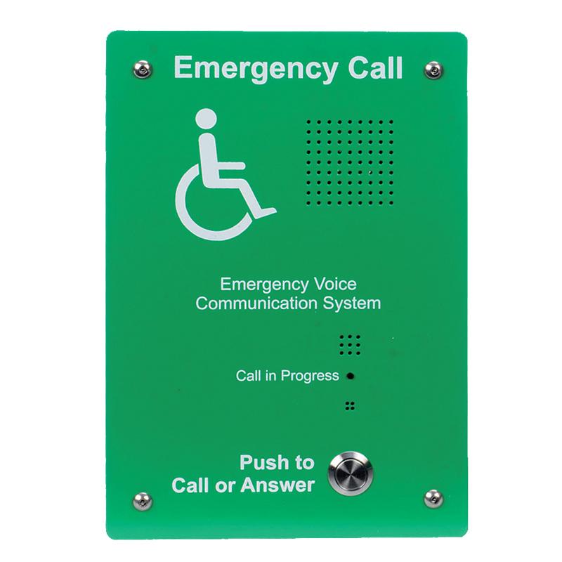 - Allows two way communication between someone in a disabled refuge and 'building control' at the touch of a button